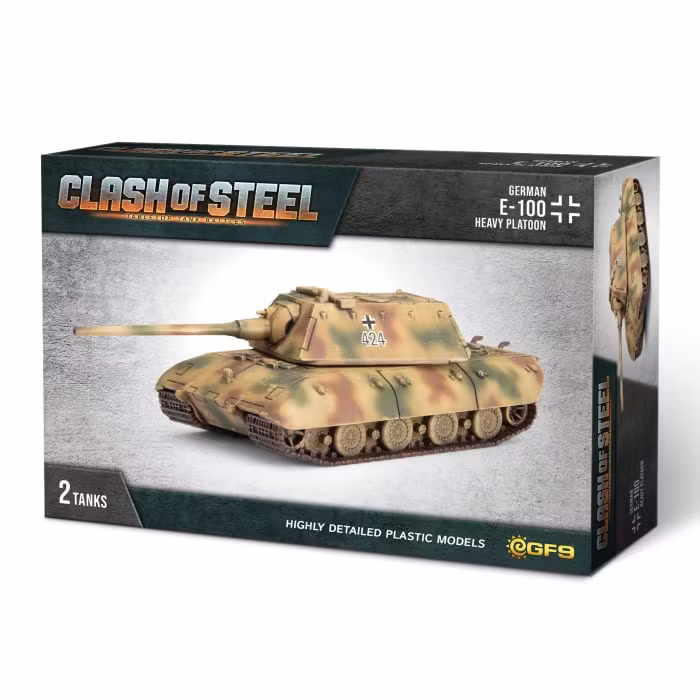 E-100 Heavy Platoon 189 SEK This box contains:2x Highly Detailed Plastic E-100 12.8cm or E-100 15cm Tanks---These miniatures are supplied unpainted and unsassembled. This product is unfortunatly out of stock Artikelnummer: CSG09 Dela Information Recensioner This box contains:2x Highly Detailed Plastic E-100 12.8cm or E-100 15cm Tanks---These miniatures are supplied unpainted and unsassembled.