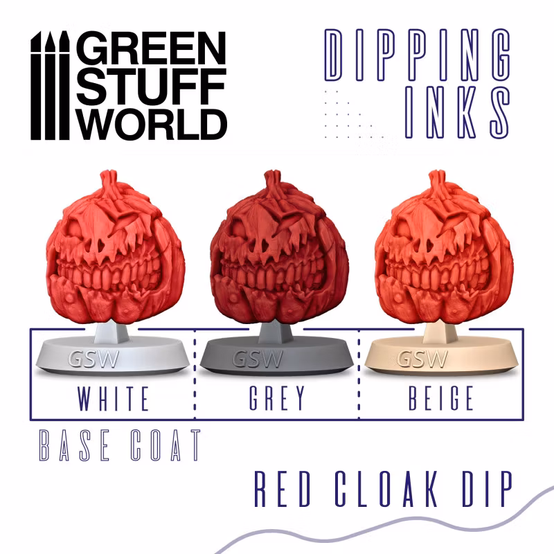 Dipping ink semi-transparent paints help you to shade your figures more quickly and easily over a single coat of paint. Apply with a brush over a layer of matt white or a light colour to easily achieve realistic shadows in a single application of Dipping.