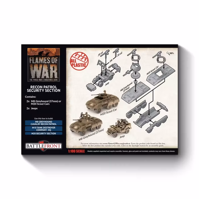 Recon Patrol Security Section 279 SEK THIS PRODUCT CONTAINS:2x M8 Greyhound (37mm) or M20 Scout Cars2x Jeeps---These miniatures are supplied unassembled and unpainted This product is unfortunatly out of stock Artikelnummer: UBX79 Dela Information Recensioner THIS PRODUCT CONTAINS:2x M8 Greyhound (37mm) or M20 Scout Cars2x Jeeps---These miniatures are supplied unassembled and unpainted