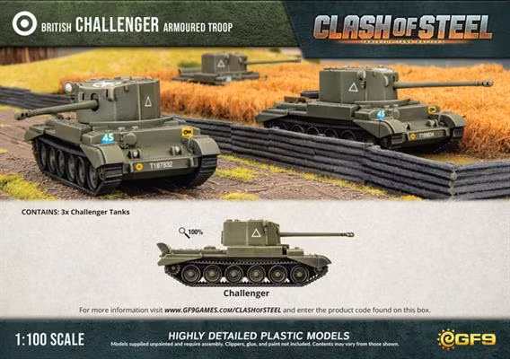 As German tanks became heavier with thicker armour, Allied forces looked for new options to defeat them. The appearance of the Tiger I was the last straw and prototype 17 pounder anti-tank guns were rushed to the front to give British forces an effective counter. The Challenger was one of the many options pursued. This box contains...3x Challenger Tanks