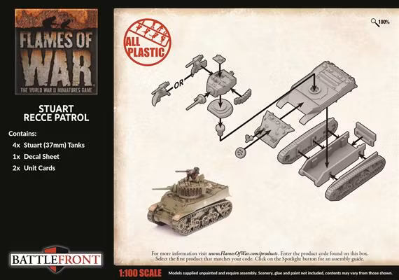 Stuart Recce Patrol (Plastic) 359 SEK Contains: 4x Stuart (37mm) Tanks, 1x Decal Sheet This product is unfortunatly out of stock Artikelnummer: BBX58 Dela Information Recensioner Contains: 4x Stuart (37mm) Tanks, 1x Decal Sheet