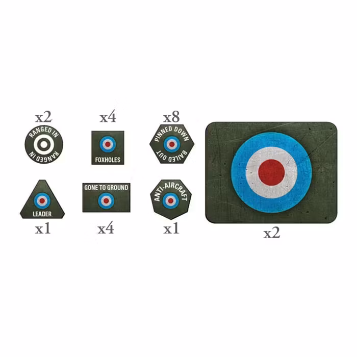 A set of themed, fully coloured game tokens for Flames Of War.