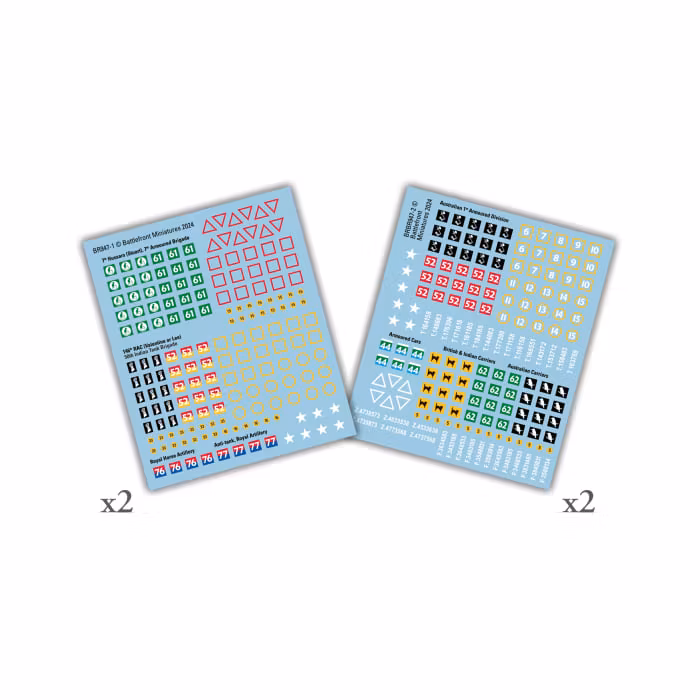 British Far East & Commonwealth Decals (x4) 119 SEK THIS PRODUCT CONTAINS:4x Decal Sheets2x Australian 1st Armoured Division, British & Indian Carriers and, Australian Carriers Decal Sheets2x British 7th Armo I lager/ går att beställa Köp nu Lagersaldo: 1 Artikelnummer: BR947 Dela Information Recensioner THIS PRODUCT CONTAINS:4x Decal Sheets2x Australian 1st Armoured Division, British & Indian Carriers and, Australian Carriers Decal Sheets2x British 7th Armoured Brigade and 50th Indian Tank Brigade Decal Sheets