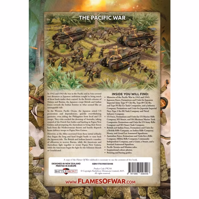With each copy of The Pacific, 1942 - 1943 you will find a copy of the full catalogue, detailing all the Flames Of War miniatures and accessories found in the Pacific book. Use this as a point of reference to get to know your opponent's potential army composition or to help plan the next additions to your own army.