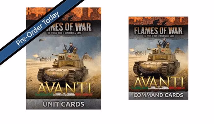 The Italian Avanti Unit and Command Cards contain one of each Unit Card that relates to their book and a Command Card pack that allow Flames Of War generals to field iconic warriors, build new types of units, field new types of equipment, enhance your commander’s capabilities, and bring new tactics and stratagems to the battlefield.
