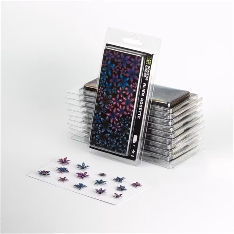 This sheet contains 47 different color and sized alien rosette leaf groups for your scale models, hobby figures and scenic dioramas.