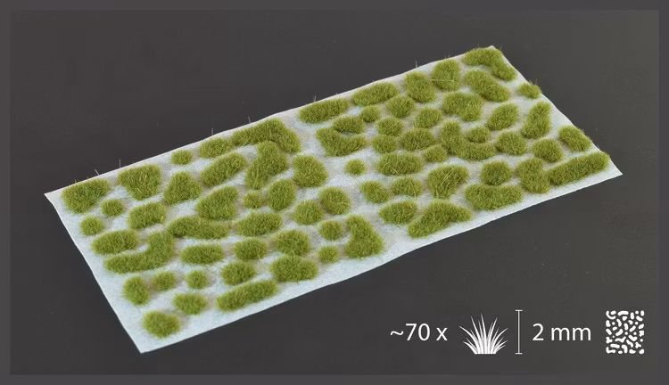One plastic sheet of 14.5cm x 6.5cm full of Gamer's Grass tufts. Tufts are 2mm tall.
