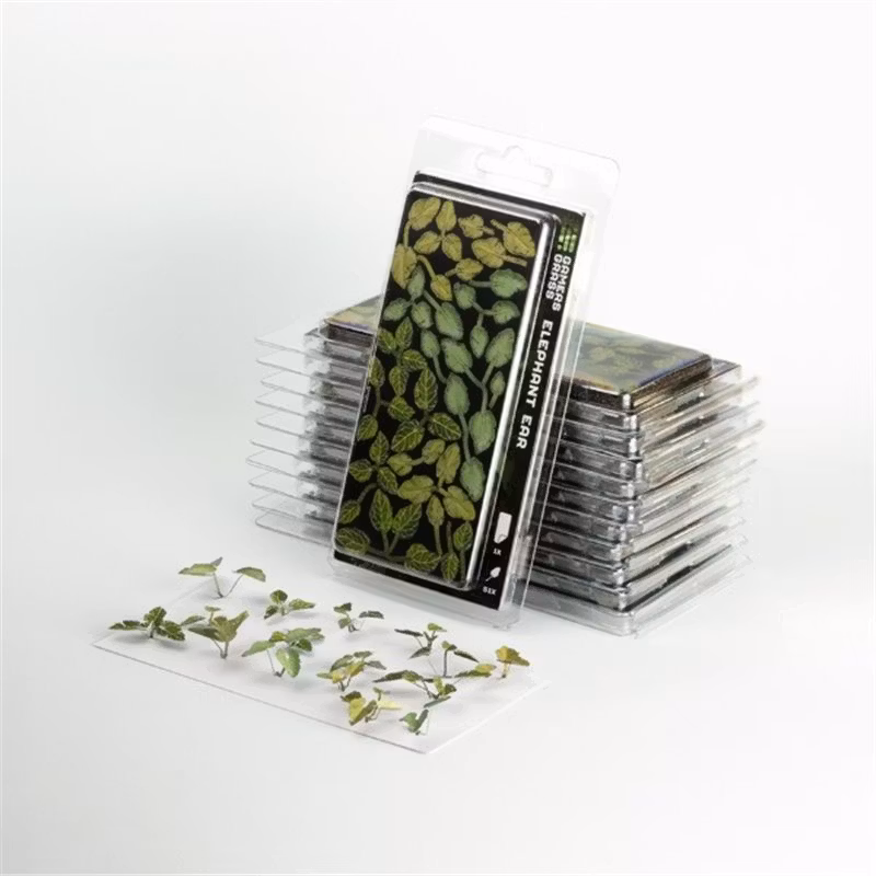 This sheet contains 51 different color and sized elephant ear leaves for your scale models, hobby figures and scenic dioramas.