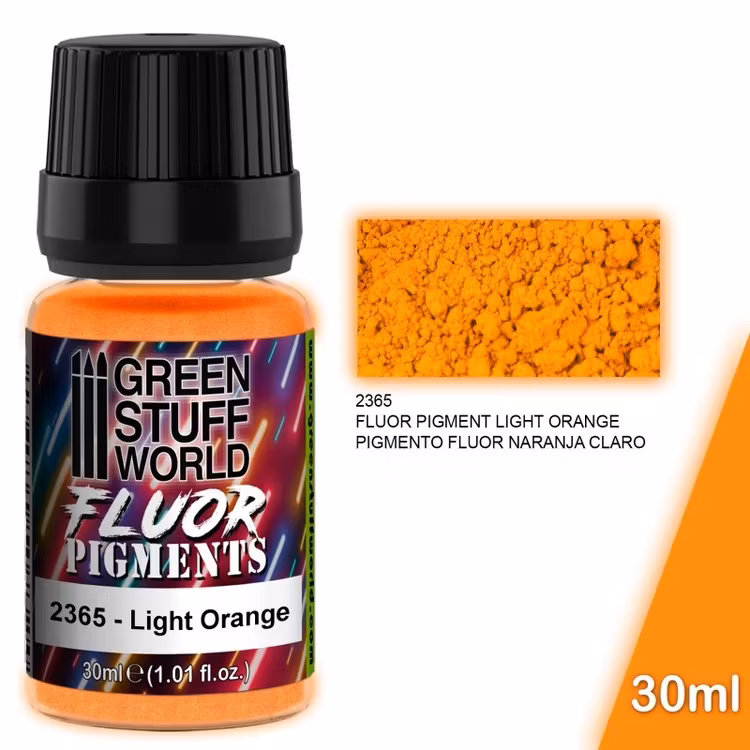 Bright colored fluorescent pigments able to glow under ultraviolet light, available in many varying colors for a wide variety of distinctive effects for your models. Apply directly over any surface. We recommend mixing them with mediums, paints, varnish or pigment fixers for them to stay permanently.