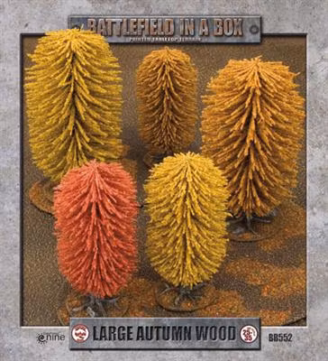 Contains 5 x Large Autumn Trees, 5 x Painted Large Autumn Tree Stands, 1 x Painted Forest Base and 2 x Packets of Static Grass