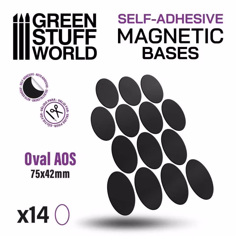 Self-adhesive flexible magnetic sheets provide a quick and simple way of magnetizing your wargames units without the necessity of drilling bases and gluing magnets. Square, rectangular, round, and oval most common shapes are available in a variety of sizes, but also as complete sheets to be cut to convenience with a pair of scissors or a craft knife.